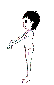 站直,拿一條毛巾,雙手與肩同寬,手掌朝下抓住兩端。