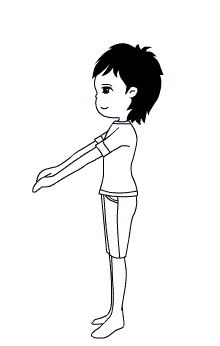 雙手十指交扣、手心朝上,盡量向天伸展,感覺整條脊椎被拉開。