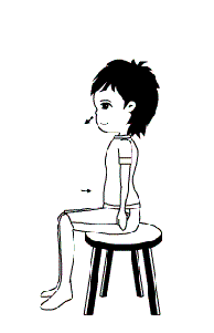 坐著,雙臂放在大腿上,吸氣時放鬆手掌,吐氣時緊握拳。