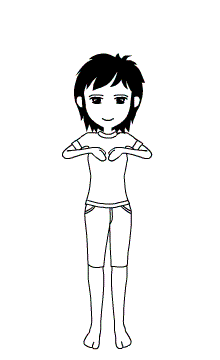 雙腳併攏站好,全身收緊,雙手上舉交叉,手腕翻轉、掌心相對合十。